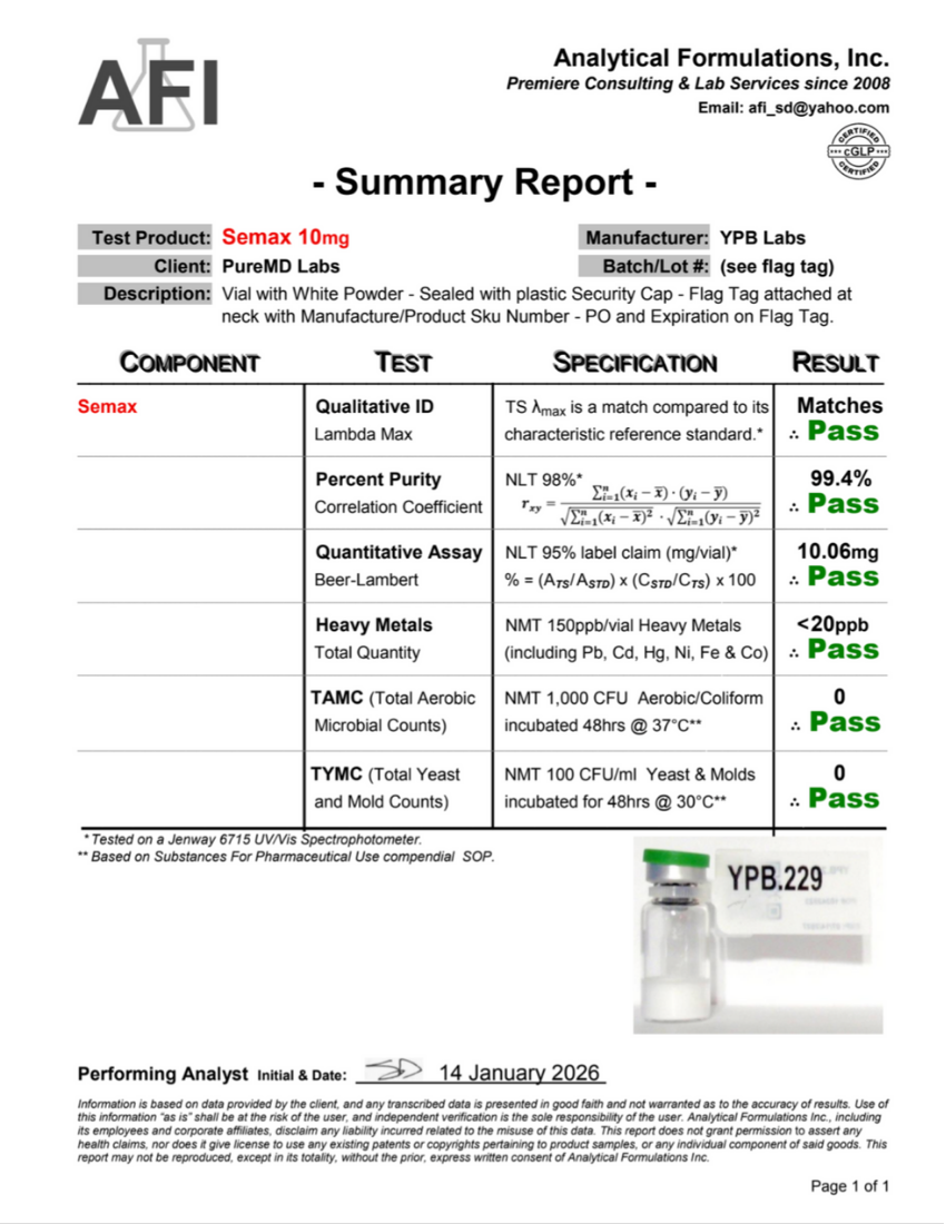 All products from Vitae Peptides are manufactured using a lyophilization (freeze-drying) process. This method is designed to maintain product integrity and allows vials to remain stable during shipping for approximately 3–4 months.